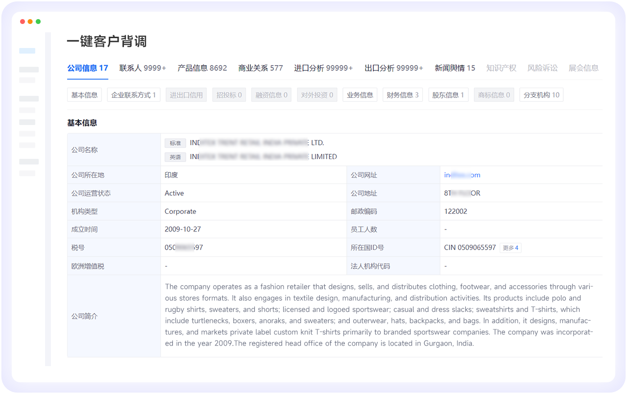 除补充贸易、商业、互联网三大数据库外,新增产品、知识产权、新闻舆情、展会数据等多维数据,并精准治理、及时更新,数据更全、更准、更深,给您"全球视野"。